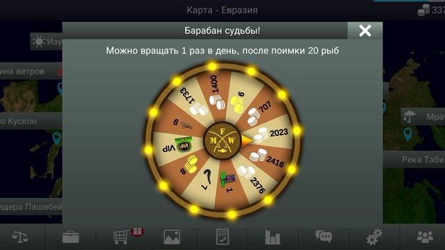 Кручу Колесо судьбы в My fishing world!Делаю среднее врашение