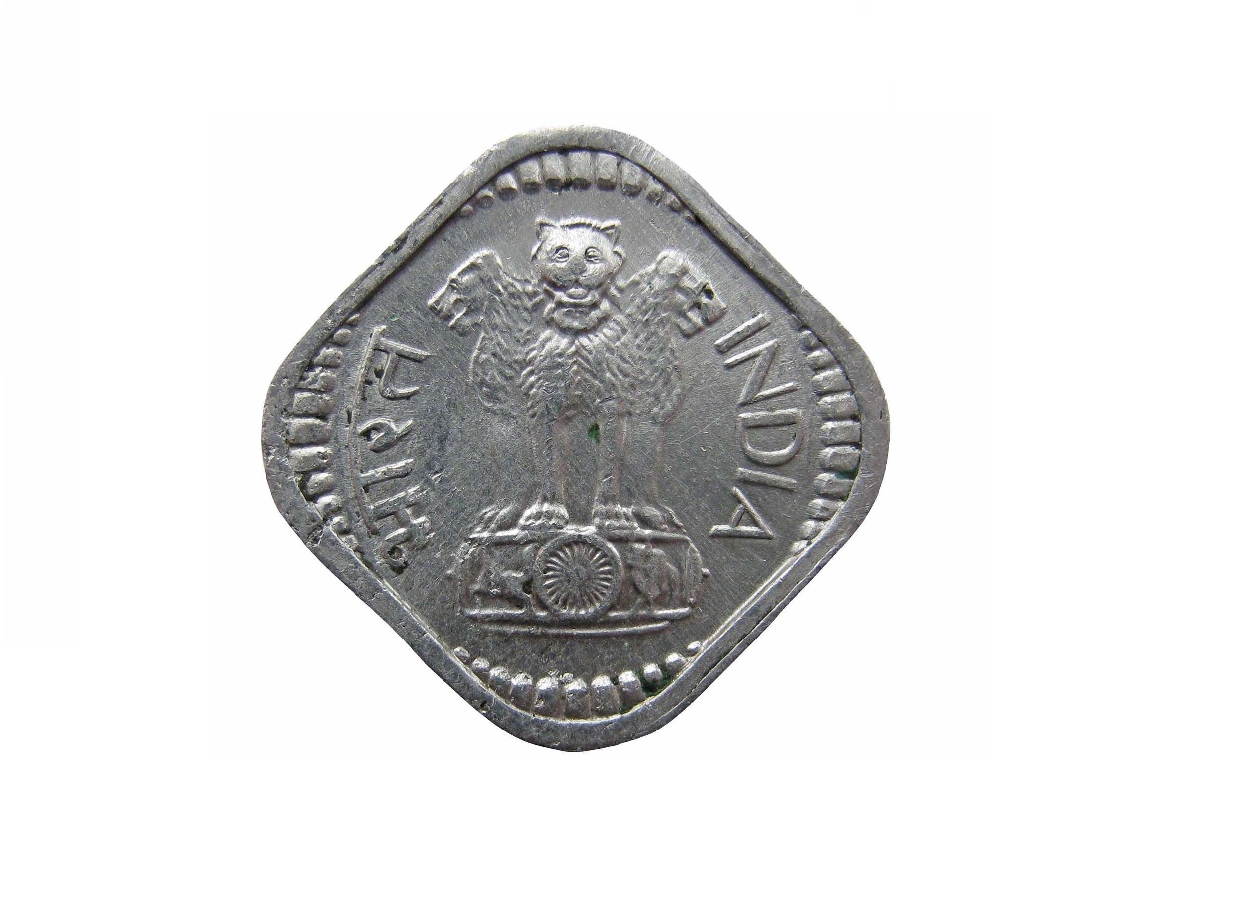 монеты необычной формы в виде квадрата со скругленными углами 5 пайс 1970г