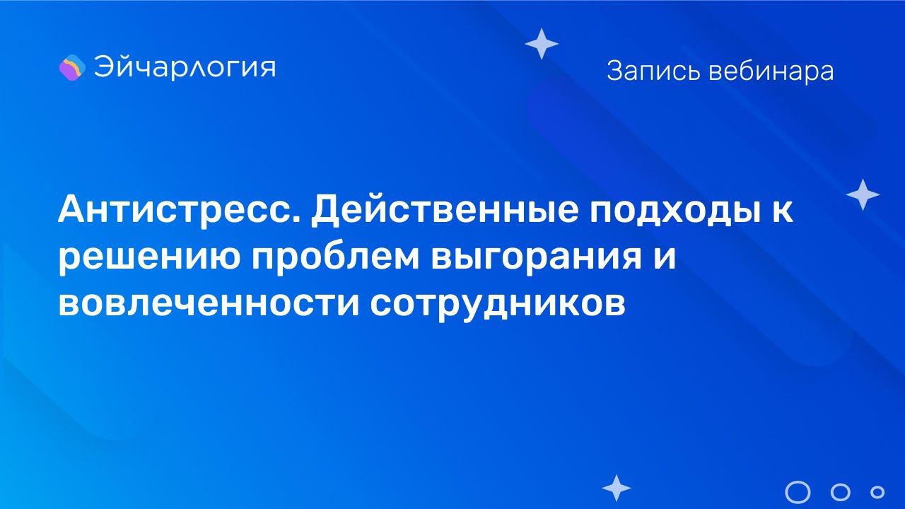 Презентация вебинара: https://clck.ru/38cJAM На вебинаре мы: - Поговорим о том, как стресс на работе влияет на вовлеченность сотрудников - Обсудим, как возникает выгорание и как его обнаружить у себя или в команде - Разберем практики осознанности, помогающие в профилактике выгорания и позволяющие вовремя заметить его признаки и не дойти до “точки невозврата” - Проанализируем тренды в направлении повышения вовлеченности сотрудников и улучшения их благополучия ________________ ▶️ Вступайте в телеграм-канал «Эйчарлогии» — https://t.me/+2r6alzlxVQ1hZTQ6 В канале вы сможете найти свежие экспертные статьи, собранные из разных источников, актуальные новости и полезные лайфхаки, интересные исследования и практичные инструменты, онлайн-мероприятия и вебинары. ▶️ Подписывайтесь на чат-бота для вебинаров от «Эйчарлогии» — https://t.me/hrlogia_webinars_bot - Актуальные мероприятия для HR в одном месте; - Автоматические отправки напоминаний о начале вебинаров; - Отправка записей мероприятий, на которые вы зарегистрировались; - Отсутствие спама и нетематической рекламы. ▶️ Записи прошедших мероприятий доступны по ссылке — https://hrlogia.ru/webinars