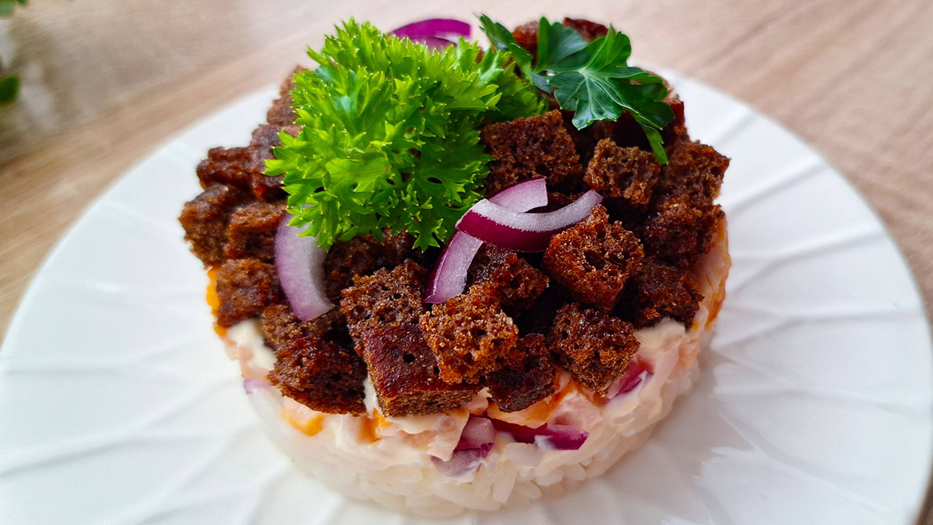 Самый вкусный слоеный Салат с сухариками 😋 Быстрый рецепт из простых продуктов !