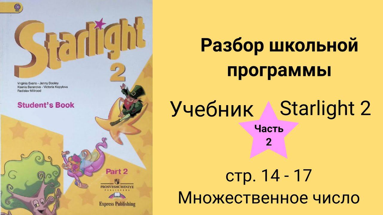Поблагодарить автора и поддержать канал можно по реквизитам на сайте https://taplink.cc/liubov.swan (Нажмите на раздел: "Поблагодарить и поддержать автора YouTube канала. Реквизиты здесь", там вы найдете реквизиты для перевода) Пишите в комментариях или по контактам ниже школьную тему (учебник и страницу), которая непонятна вашему ребенку и я запишу видео разбор по данной теме! Контакты для связи Инстаграм https://www.instagram.com/p/CkipZv2ID_b/?igshid=NTdlMDg3MTY= Сообщество "Английский через мнемотехнику/ Любовь Свон" https://vk.com/english_swan E-mail: mslublu@yandex.ru Данное видео носит обучающий, ознакомительный характер и предназначено для детей, которые учатся во 2 классе по УМК Starlight 2 и для родителей. Приведен подробный разбор учебника на странице стр. 14 - 17. Множественное число Электронный учебник Starlight 2. Student's book. Part 2 / Звёздный английский 2 класс. Часть 2. Учебник для общеобразовательных учреждений и школ с углубленным изучением английского языка на электрон. носителе/ [Баранова К.М., Дули Д., Копылова В.В., Мильруд Р.П., Эванс В.] - 2-е изд. - М.: Express Publishing: Просвещение, 2011. - 133 c.: ил. - (Звёздный английский). - ISBN 978-5-09-026233-0 Источник 11 классов. Портал школьных пособий. URL: https://pdf.11klasov.net/
