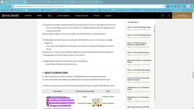 Black Desert Online SEA/TH server 20th Mar 2024 patch summary