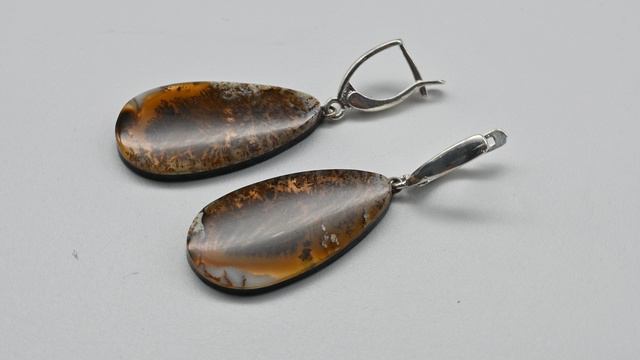 Серьги агат моховой на зеркальной подложке 17*33мм. Арт: тв304002