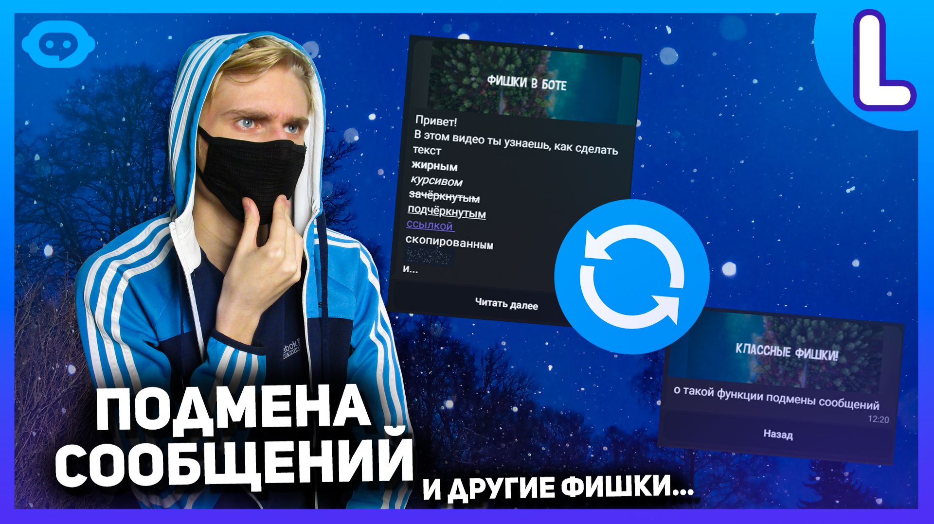 ✅Перезалив видео с YouTube от 16 декабря 2022 г. В этом видео ты узнаешь фишки для телеграм ботов: форматирование текста в телеграм и подмена сообщений в телеграм боте. 🌐Создавай ботов в Telegram с LEADTEX: https://clck.ru/3RKuX5 👉Мои социальные сети: https://tapy.me/likeus https://t.me/IlyaLikeus/106 🕘Таймкоды видео: 0:00 Вступление 0:42 Создание бота 1:54 Жирный, курсивный и зачёркнутый текст 3:19 Подчёркнутый текст 4:12 Скрытый текст телеграм (снежинки) 5:09 Ссылка в тексте телеграм 6:56 Текст, который можно скопировать (Моноширинный) 7:51 Подмена сообщений в телеграм боте 🎵Production Music courtesy of Epidemic Sound! https://share.epidemicsound.com/ay7gup 🎞Footage by Artgrid: https://artgrid.io/Ilya-786236