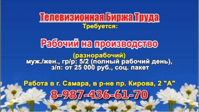 Вакансии и телефоны прямых работодателей в специализированной программе по трудоустройству "Телевизионная Биржа Труда" - г.САМАРА, г.ТОЛЬЯТТИ т/к РЕН-ТВ