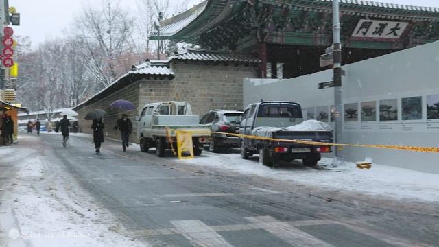 눈 내리는 남대문 시장, 도심 출근길 폭설 풍경, 눈 내리는 시장과 도시 한복판의 백색소음 ASMR, 서울 트래블 워커.