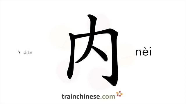 内 (nèi) inside; inner; internal; within; interior / внутренняя часть, внутренность *внутри