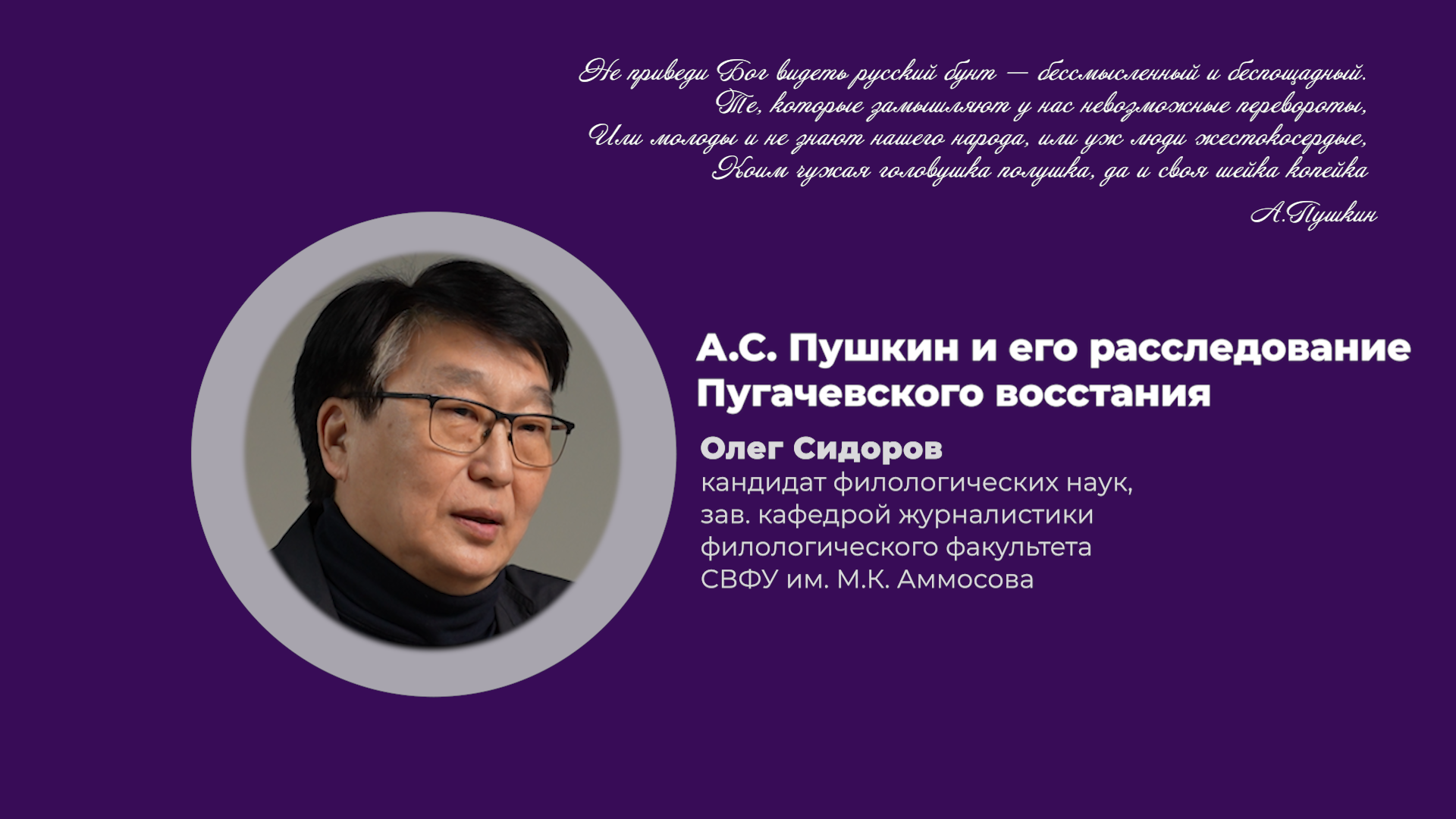 📜🖋️ Александр Пушкин прежде всего больше известен как поэт, драматург и прозаик. Но далеко не многие знают, что он был и очень талантливым журналистом и критиком, издавал и редактировал собственный журнал, который считался одним из лучших в первой половине 19 века. В сегодняшней лекции, посвящённой 225-летию Александра Сергеевича Пушкина, мы раскроем вам его с точки зрения талантливого журналиста. Лекцию читает Олег Сидоров, кандидат филологических наук, заведующий кафедрой журналистики филологического факультета СВФУ им. М.К.Аммосова. Подписывайтесь на канал и смотрите лекции профессоров СВФУ в один клик! «Наш университет_лекции». 1 сезон: https://goo.gl/EzWwyD «Наш университет_лекции». 2 сезон: https://goo.gl/Ai4mjd «Наш университет_лекции». 3 сезон: https://goo-gl.su/83Ko2RzR «Наш университет_лекции». 4 сезон: https://goo-gl.su/FCEP «Наш университет_лекции». 5 сезон: https://goo-gl.ru.com/u7j «Наш университет_лекции». 6 сезон: https://goo.su/wVXvG «Наш университет_лекции». 7 сезон: https://goo.su/1Hpk0C «Наш университет_лекции». 8 сезон: • Взаимосвязь численности населения Яку... «Наш университет_лекции». 9 сезон: https://rutube.ru/video/0e1c46e115d2d... ➡️ Сайт СВФУ: http://s-vfu.ru ➡️ Сайт «Наш университет_онлайн»: http://nusvfu.ru/ ➡️ Подкаст «Сырдат»: Яндекс.Музыка: https://music.yandex.ru/album/13451110