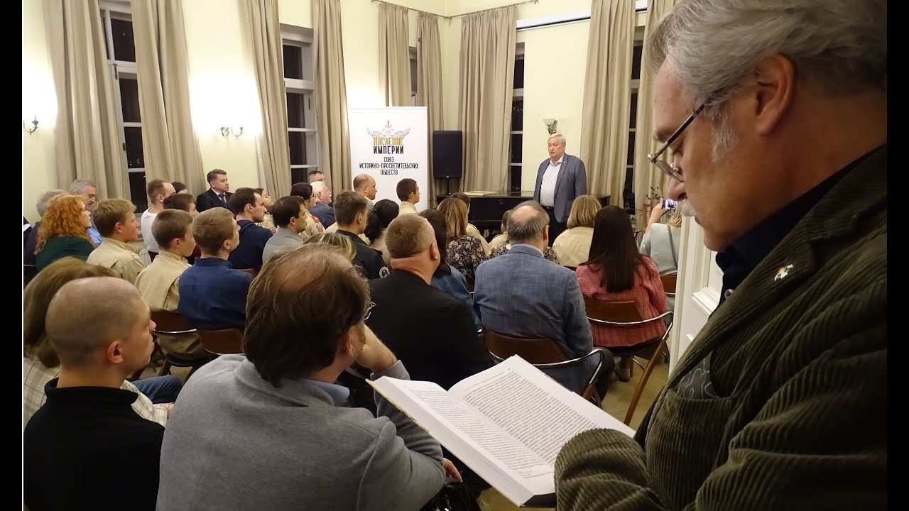 Сайт проекта: https://nbfnasledie.ru/return-to-russia/ Группа в ВК: https://vk.com/return_to_russia Исторический клуб «Исторические истоки современной русофобии на Украине». 28 сентября 2023 года в рамках проекта «Вернуться в Россию» состоялся Исторический клуб НБФ «Наследие», на котором выступил известный российский историк, доктор исторических наук, профессор факультета политологии МГУ им. М.В. Ломоносова, секретарь Правления Союза писателей России С. В. Перевезенцев. Он прочитал лекцию «Исторические истоки современной русофобии на Украине». В своём содержательном полуторачасовом выступлении опытный академический лектор раскрыл сущность самого понятия «русофобия», его истоки, рассказал о времени возникновения русофобии в Европе, подробно остановился на трагедии геополитического раскола Русской земли в годы монголо-татарского нашествия. В ярких красках и энергичных образах лектор живописал аудитории исторический фон, обусловивший формирование и укоренение многовековых традиций европейских антирусских фобий, оказавших заметное, если не решающее влияние на сегодняшнюю русофобию на Украине, уже по инерции влившейся в начавший своё формирование в 15-ом веке и уже окончательно оформившийся к концу 18-ого века устойчивый русофобский контекст. Слушатели узнали, кто был первым «политтехнологом» русофобских идей в 15-16 веках и где находились центры русофобии. Лекции проходила в online режиме и транслировалась в социальной сети ВКонтакте в группе партнера НБФ «Наследие» Союза «Наследие Империи». За время трансляции видео посмотрело более 2000 человек. По завершении своего выступления С.В. Перевезенцев подробно ответил на многочисленные вопросы, заданные ему присутствующими, и вручил книги по исторической тематике наиболее активным слушателям. Актовый зал музея Императора Николая II в этот раз не сумел вместить всех собравшихся. Всего мероприятие посетило свыше 80 человек, значительную часть которых составляла учащаяся молодежь из Москвы и Московской области.