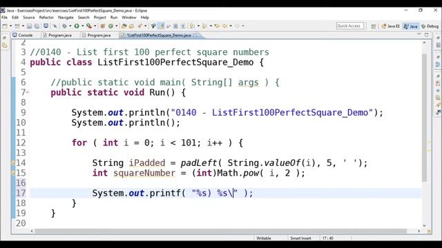 Program to list the first 100 perfect square numbers in Java. ???'? ?????? ?? ????????? ??? ????? ??? ???? ??????! Download source code at: https://drive.google.com/file/d/0B61-MHkMYqM4ZFpLanNLaDI1cmM/ Other videos: ASP.NET Web API intro and Hello World - https://youtu.be/RJpBix5s3BY ASP.NET Web API - Controllers - https://youtu.be/nlFVQddx1wc ASP.NET Web API - Routing - https://youtu.be/2GvX8puS2is ASP.NET Web API - Parameter Binding - https://youtu.be/LuFoVFeEBPw ASP.NET Web API - File Uploading - https://youtu.be/MzDQALXH-SI ASP.NET Web API - Client Console App - https://youtu.be/Ry45EkZQ2CM ASP.NET Web API - BSON - https://youtu.be/BXnfCMcERaw ASP.NET Web API - Action Results - https://youtu.be/W80Vflesu8s ASP.NET Web API - Content Negotiation - https://youtu.be/vdKF1WTYVq0 ASP.NET Web API - Media Type Formatters - https://youtu.be/SGeudFDlvCI ASP.NET Web API - Action Filters - https://youtu.be/x7kZJf416J4 ASP.NET Web API - Model Validation - https://youtu.be/sN3qYlxr_vA ASP.NET Web API - Save File in SQL Server with ADO.NET - https://youtu.be/LixIRqhzUNQ ASP.NET Web API - File Downloading - https://youtu.be/bS_bXsT0kq4 ASP.NET Web API - Get File from SQL Server with ADO.NET - https://youtu.be/zxPVmGpX07I ASP.NET Web API - Save File in SQL Server with Entity Framework - https://youtu.be/JYPaOO_fCug ASP.NET Web API - Get File from SQL Server with Entity Framework - https://youtu.be/QxOeuuosgH4 ASP.NET Web API - Exception Filters - https://youtu.be/1x0s0K3w3Z4 Generate PDF with Python - Reportlab: https://youtu.be/ZDR7-iSuwkQ Generate PDF with Python - Reportlab - Create Table: https://youtu.be/B3OCXBL4Hxs Generate PDF with Python - Reportlab - Create Table - Part 2: https://youtu.be/r--iZCQbxzE Generate PDF with Python - Reportlab - Create Charts: https://youtu.be/FcZ9wTGmMrw Generate PDF with Python - Reportlab - Joker Cat Report demo: https://youtu.be/SDeOPyhO26M Run Python Script from Excel VBA: https://youtu.be/Z4SC53VZh-w Run Python Script from Excel VBA - Part 2: https://youtu.be/4Z9via5_q9k Run Python Script from Excel VBA - Part 3.1: https://youtu.be/PoEnWr6c1cM Run Python Script from Excel VBA - Part 3.2: https://youtu.be/Tkk0aedRyU4 Basic Python KeyLogger: https://youtu.be/AS4PnrWv-f4 Convert .py into .exe: https://youtu.be/CftCQYNb7B4 Image to Text with Python - pytesseract: https://youtu.be/4DrCIVS5U3Y Speech to Text with Python: https://youtu.be/If2HJ23zP2U Weather Forecast with Python: https://youtu.be/O9G4vBsiV40 Search Movie with Python - IMDbPY: https://youtu.be/vzOdCPV7zvs Generate and Read QR Code with Python: https://youtu.be/2QK942FPCw0 Run JavaScript from Python: https://youtu.be/ByjpBvpPp8Q Run Python in Browser - Brython: https://youtu.be/dFNXwq5kmNk Hide Text in Image with Python - Stegano: https://youtu.be/IhXbJfLCst0 HTML to PDF with Python: https://youtu.be/m3u3oLgDcJI Web Scraping with Python - BeautifulSoup: https://youtu.be/Jnn2kIqPH7o Generate Excel with Python - OpenPyXL: https://youtu.be/KNdqnIpl2UE Translate Text with Python - googletrans: https://youtu.be/yRFkI8miPHA Convert Python 2 to Python 3 Code - 2to3: https://youtu.be/t0v4F396_nc Face Detection with Python - OpenCV: https://youtu.be/FeUAmWZ7Clw Run Python Script in LibreOffice: https://youtu.be/3Ef_ordyWQs Generate Excel with Python - xlwings: https://youtu.be/sGvMLmLOH5g RESTful Web Service - Hello World - Java Spring: https://youtu.be/RXkLlq8YxeM Playlists: Python Pandas: https://www.youtube.com/playlist?list=PLOGAj7tCqHx_c5uWrZX4ykdujODcqczmQ Python and SQL Server: https://www.youtube.com/playlist?list=PLOGAj7tCqHx9Add6MWzl_5Wbix9V1OjSx Numpy Exercises: https://www.youtube.com/playlist?list=PLOGAj7tCqHx9eQjST2RV-_Py3EJHqRq0C Swift: https://www.youtube.com/playlist?list=PLOGAj7tCqHx9C08vyhSMciLtkMSPiirYr JavaScript: https://www.youtube.com/playlist?list=PLOGAj7tCqHx_grLMl0A0yC8Ts_ErJMJft c#: https://www.youtube.com/playlist?list=PLOGAj7tCqHx9H5dGNA4TGkmjKGOfiR4gk Java: https://www.youtube.com/playlist?list=PLOGAj7tCqHx-ey9xikbXOfGdbvcOielRw Follow us on Facebook https://www.facebook.com/AllTech-1089946481026048/ #java