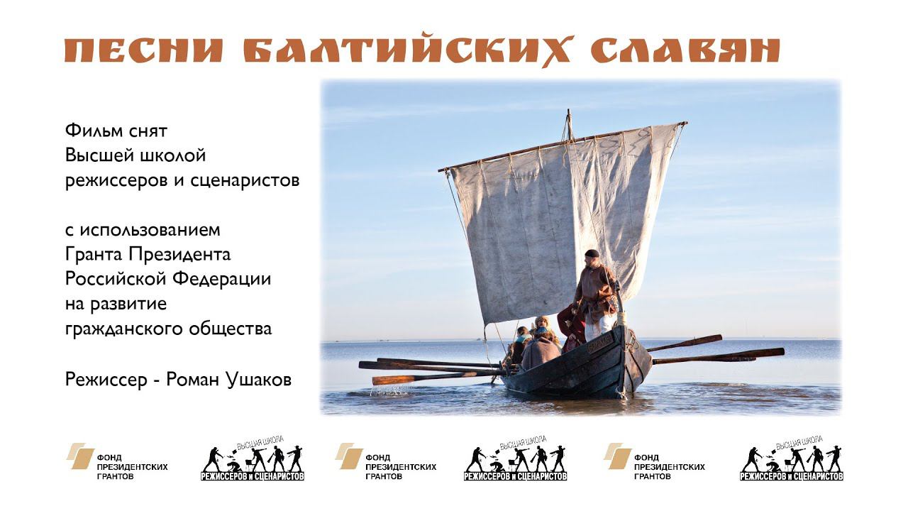 Научно-популярный фильм "Песни Балтийских славян" снят Высшей школой режиссёров и сценаристов (г. Санкт-Петербург) с использованием гранта Президента Российской Федерации на развитие гражданского общества, предоставленного Фондом Президентских грантов. Вся съёмочная команда проекта состояла из студентов и выпускников ВШРиС. Режиссёр фильма РОМАН УШАКОВ (выпускник мастерской режиссуры игрового кино) Оператор АЛЕКСАНДР БЕЛЯЕВ (выпускник мастерской режиссуры игрового кино ВШРиС, гр. Р-3) Оператор НАТАЛЬЯ НЕДОВОДИНА (выпускница операторской мастерской ВШРиС, гр. О-3) Оператор, Режиссер монтажа СЕРГЕЙ ТАМОНОВ (выпускник мастерской документального кино ВШРиС, гр. Д-1) Второй режиссер ОЛЬГА ИЛЮШИНА (студентка мастерской режиссуры игрового кино ВШРиС, гр. Р-9) Звукооператор, звукорежиссер ДМИТРИЙ БОНДАРЧУК (выпускник мастерской режиссуры игрового кино ВШРиС, гр. Р-2) Гафер ГРИГОРИЙ ОРЕЛ (выпускник операторской мастерской ВШРиС, гр. О-3) Администратор площадки ОЛЬГА БОЙКО (студентка мастерской режиссуры игрового кино ВШРиС, гр. Р-9) Бэкстейдж ДМИТРИЙ АЛИЗАРЧИК (студент операторской мастерской ВШРиС, гр. О-4) Спецэффекты и компьютерная графика ДЕНИС УЗДЯЕВ (выпускник операторской мастерской ВШРиС, гр. О-1) Фотосъёмка АННА ТРОНОВА (выпускница мастерской документального кино ВШРиС, гр. Д-2) Продюсер ВАСИЛИЙ ЩЕРБЕНКО (генеральный директор студии "КиноОко") Руководитель проекта СВЕТЛАНА ФЕДИНА (директор ВШРиС)