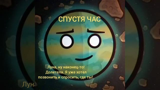 Краткое описание фильма Луна решает переехать к Титану, но Земля гневно ей говорит, что никуда не отпустит её. Луна успокаивает Землю, говоря ей, что останется, а сама отлетает подальше и говорит по телефону Титану, что ей разрешили переехать. Спустя час Луна прилетает к Титану, которому от переживаний уже хотелось позвонить ей. Луна грустно спрашивает у Титана, где её орбита, и Титан говорит ей, что её орбита за самой последней, и что Сатурн не будет против. Спустя 3 дня после переезда Луны Земля начинает грустить, скучать и переживать за родной спутник, приговаривая : " Луна, я переживаю... Вернись!.. " Луне тоже не хорошо 3 дня жить без родной планеты, и она тоже начинает скучать. Позже луна со слезами прилетает к Титану, говоря, что она не может жить без родной планеты, и что Земля ей роднее всего. Титан улыбнулся Луне и сказал : " Конечно! если надо, то иди! ", а потом фильм сразу заканчивается.
