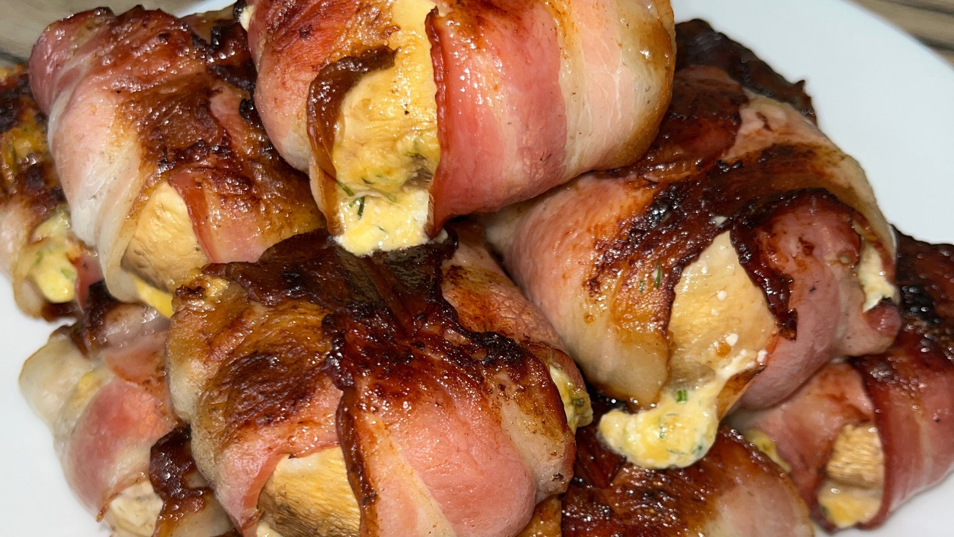 Шампиньоны с сыром в беконе