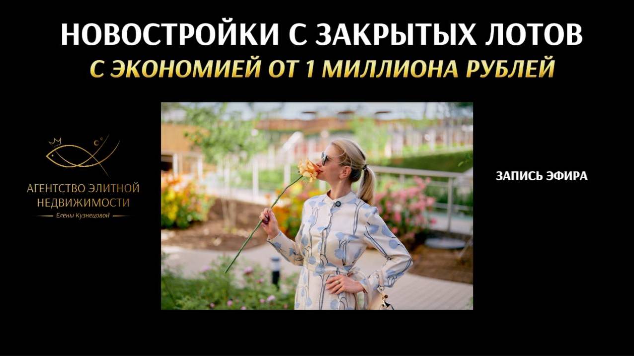 НОВОСТРОЙКИ С ЗАКРЫТЫХ ЛОТОВ с экономией от 1 млн руб. Елена Кузнецова Агенство элитной недвижимости