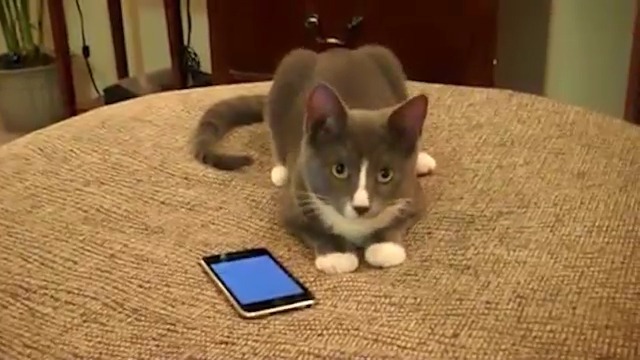 Кот играет с айфоном