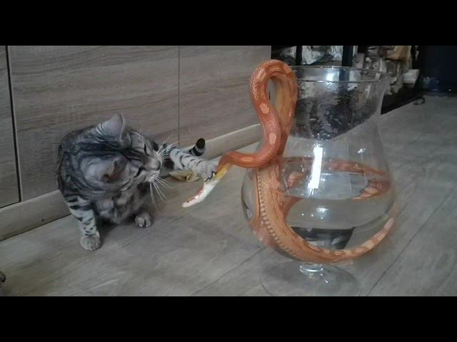 Бенгальский котик и маисовый полоз. Удивительное видео домашних животных ! Смешные и забавные котики