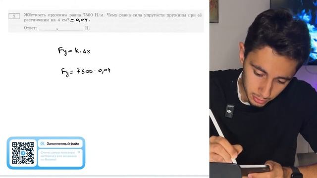 Жёсткость пружины равно 7500 Н/м. Чему равна сила упругости пружины при её растяжении на - №20007