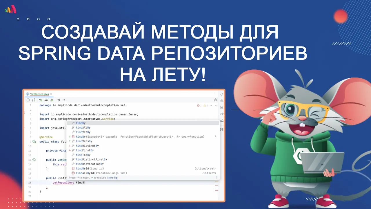 Умное автодополнение derived методов Spring Data Repository | Amplicode