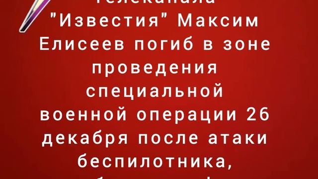 Редактор телеканала "Известия" Максим Елисеев погиб в зоне проведения СВО
