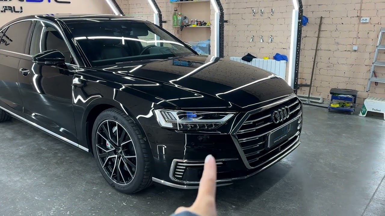 Audi A8 - перетяжка потолка, полировка кузова, бронирование и керамика, бронирование консоли