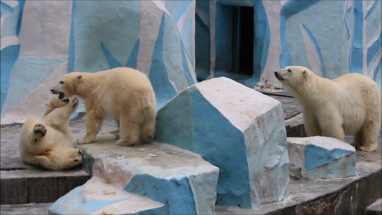 Герда родилась в Москве 20 ноября 2007 года. Её мама Симона, папа Врангель. В Новосибирск переехала 05.08.2008. В 2013 году у Герды и Кая родилась Шилка. В 2015 году она переехала в Японию. В 2015 году родился Ростик. 6 декабря 2018 года он переехал в Китай. В 2018 году родились Норди и Шайна. Сейчас они находятся в нашем зоопарке в закрытой от посетителей хозяйственной зоне. В другие зоопарки их не могут отправить. Сначала была пандемия, сейчас границы закрыты и санкции. Белые медведи Норди и Шайна содержатся в МУП «Новосибирский зоопарк имени Р. А. Шило» с рождения и по настоящее время. Данная пара молодых медведей находится вне экспозиции зоопарка, поэтому посетители не могут их видеть. Передача молодых медведей в другой зоопарк пока не планируется, — ответили на запрос редакции в пресс-центре мэрии Новосибирска. У них есть бассейн, игрушки. Их так же кормят как и раньше. Голодные не бывают. Шайна размером с маму, Норди с папу. Шайна командует Норди. Одиночные животные. Как правило, миролюбивы по отношению друг к другу, но между самцами в брачный период случаются стычки. Взрослые самцы могут нападать на медвежат. Гон с марта по июнь. Продолжительность жизни — максимум 25—30 лет; в неволе рекорд долгожительства — 42 года. Вес очень крупных самцов в некоторых частях ареала 700 и даже 800 кг: есть данные о зверях весом до 1000 кг. Обычно вес меньше. Самки всегда не только меньше, но и значительно легче самцов. Так, самцы в восточной Гренландии в состоянии нормальной упитанности весят 400—450 кг, хорошо упитанные — до 500 кг, самки, даже очень сытые, здесь же редко весят больше 350—380 кг, т. е. их вес составляет около 75% веса самцов. Длина тела на 3-й день после рождения 28—32 см, средний вес — около 755 г (650—840 г). На 26-й день длина тела увеличивается незначительно — до 35—38 см, а вес возрастает до 1125—1275 г. В возрасте 60 дней самцы весят около 7 кг, самки — около 6 кг при длине тела у первых 58—60 см, у вторых 54—58 см. В возрасте 4 месяца медвежата достигают веса 22—23 кг, в 6-месячном возрасте при длине около 110 см — 40—43 кг, в 8-месячном — 58—62 кг. Длина тела в возрасте с 6 до 9 месяцев нарастает по 6—7 см в месяц. Во время зимнего сна рост почти прекращается. В зоопарке медведей кормят утром морской рыбой, хлеб с рыбьим жиром внутри, морковь, яблоки, морская капуста, яйцо дают сырое. Медвежат подкармливают молоком из соски. На ужин мясо (говядина, конина, куры или индейка). Летом и осенью арбузы, дыни, ранетки, кабачки, тыквы, огурцы. Когда показательное кормление летом бросают живую рыбу. Медвежата с медведицей находятся до 2-х лет. 16 декабря 2022 года Герда родила 2-х медвежат. И это две девочки! Имена дали 25 июня. Медвежат зовут Стрелка и Белка. Обзор вольеров белых медведей https://www.youtube.com/watch?v=mAt_b7JD0B4&list=PLGvf0V-rAHxkpGKJaWIZIUxRKgKiqV3xZ&index=17&t=0s