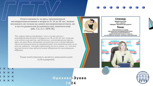 Ответственность за вред, причиненный несовершеннолетними. Щербинина И.В.