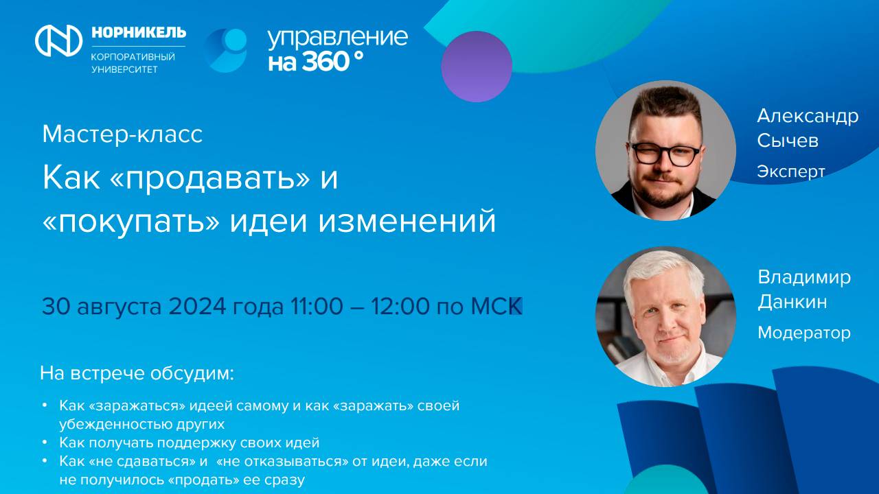 Мастер-класс в рамках программе «Управление на 360» «Как «продавать» и «покупать» идеи»