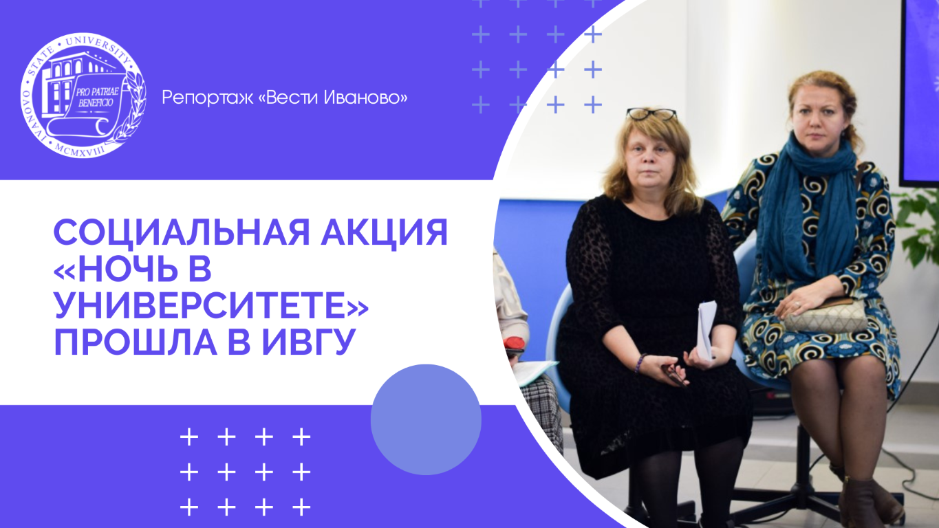 21 сентября в ИвГУ прошла «Ночь в университете». Социальную акцию с таким названием решила провести студентка ИвГУ Анастасия Ленец. В вуз она пригласила семьи с детьми, которые вынуждено покинули территорию Луганской и Донецкой народных республик. Пока дети участвовали в мастер-классах и знакомились с историей нашего края, взрослые смогли получить важные юридические консультации. Подробности – в репортаже Филиппа Ерошенкова («Вести Иваново»).