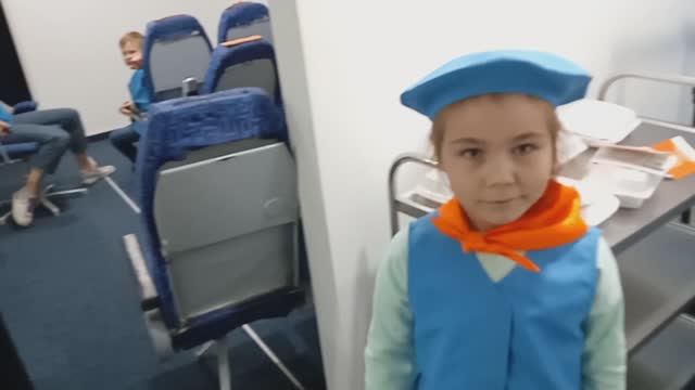 Город профессий - это потрясающее место , где ребёнок может попробовать себя в любой понравившейся профессии . Вика пробует работать стюардессой .