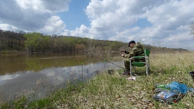 Рыбалка на фидер весной! Ловля карася на фидер! Весенний Хопер!.mp4