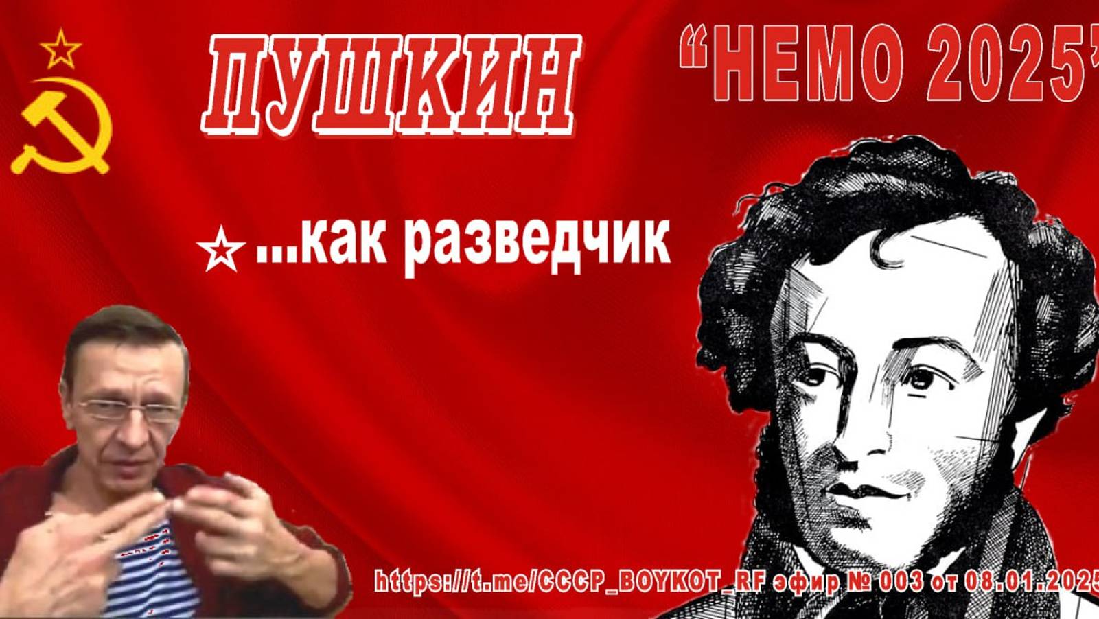 🔴 СССР 🚩 Бойкот https://t.me/CCCP_BOYKOT_RF Эфир № 003 от 08.01.2025г. "Доклады Капитана НЕМО-2025" 🟣 Пушкиниана А.С.Пушкин, как разведчик высокого уровня в Царской России 🚩🚩🚩🚩🚩🚩🚩🚩🚩 @AlexandrPetrovKazan @QRBOYKOT