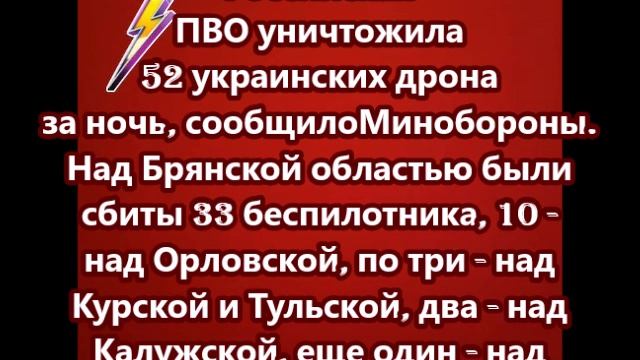 Российская ПВО уничтожила 52 украинских дрона за ночь