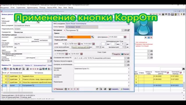 Урок 78. Корректировка отпуска в кадровой программе КостанайСофт | Изменение дней отпуска по ДС к ТД