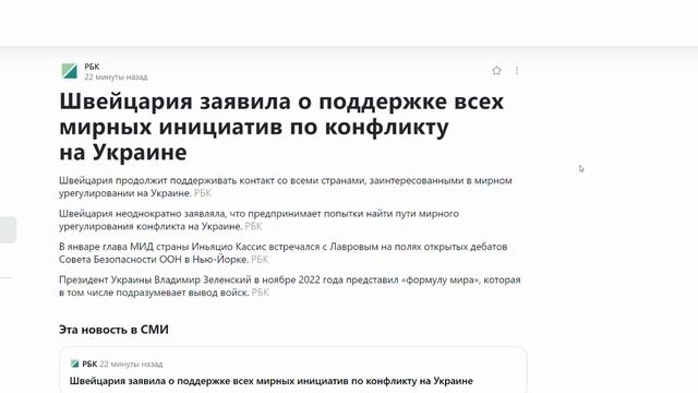 Швейцария заявила о поддержке всех мирных инициатив по конфликту на Украине
