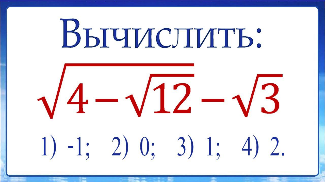 2 способа ➜ искусственный и универсальный ➜ Вычислить ➜ √(4-√12) -√3