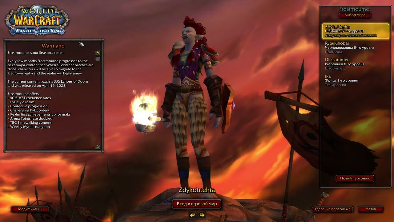 Frostmourne Warmane x0.5 world of warcraft WOTLK 61-62 lvl