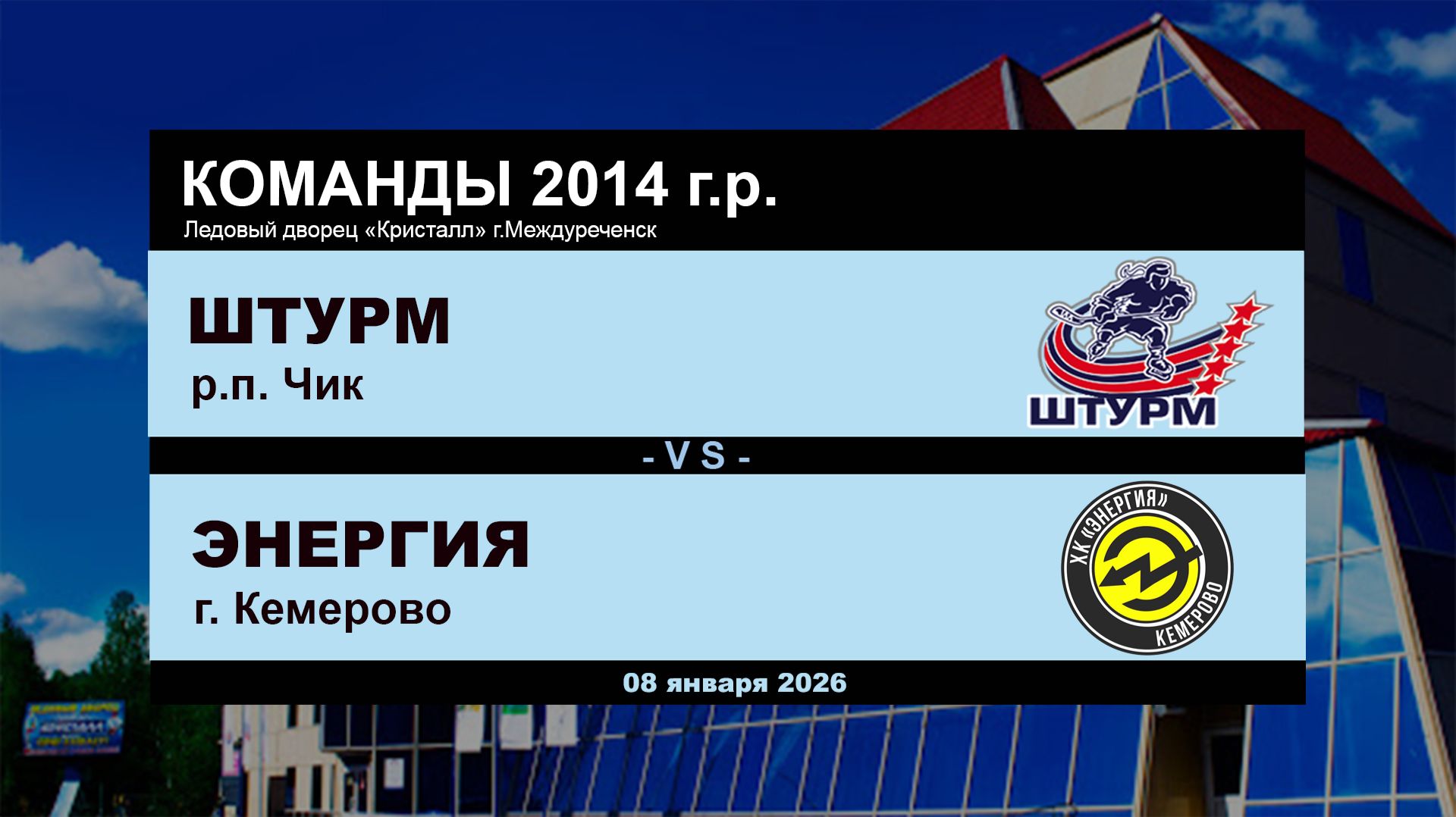 Хоккейная игра 08.01.2026 г. Команды 2014 г.р. Чик - Кемерово Ледовый дворец "Кристалл" #Междуреченск #Штурм #Энергия
