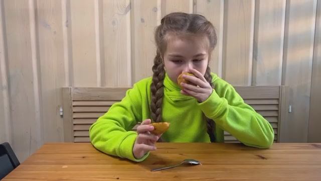 Вика впервые пробует экзотический фрукт гуаву .
