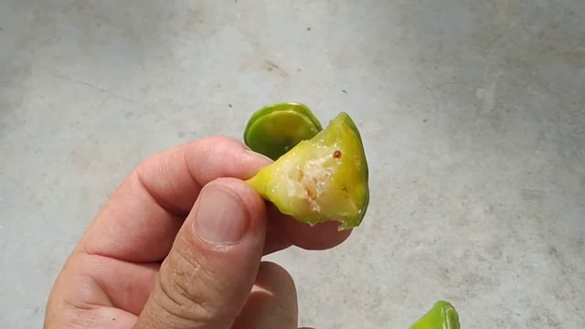 Eating Rose cactus (Peireskia bleo) fruit in Yogyakarta / Java