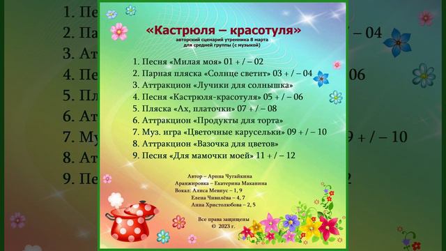 Арина Чугайкина Кастрюля-красотуля авторский сценарий утренника 8 марта для средней группы с музыкой