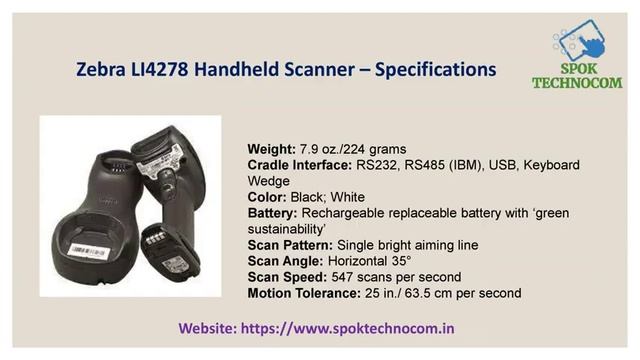 SPOK Technocom is best for Zebra L14278 Handheld Scanner in India which provide with cheap rate. Tablet or computer that allows retailers to easily process loyalty cards, mobile coupons and more.