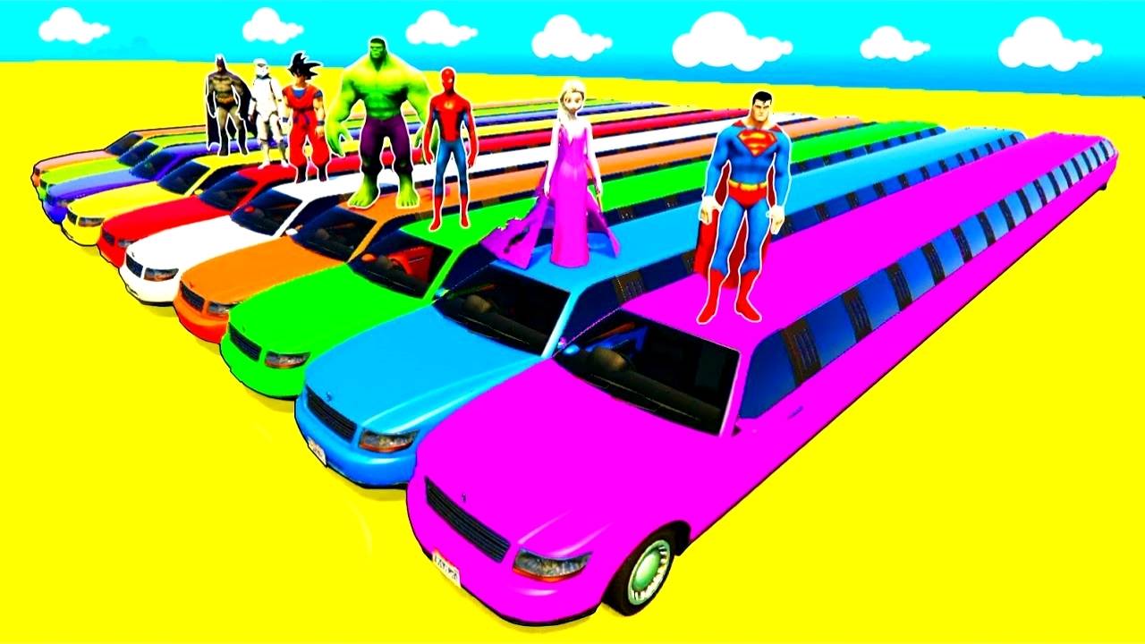 мультик про цветные длинные машинки и супергероев для детей с детскими стишками