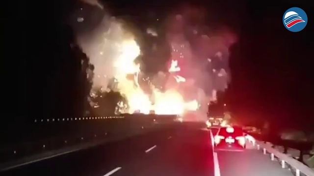 Пожар и фейерверк в одном: яркий взрыв грузовика с пиротехникой уничтожил 2 машины