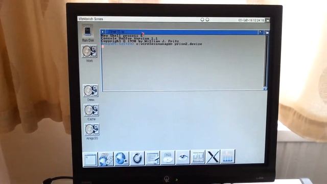 Amiga 1200 with SMC WIFI PCMCIA WPA2/AES card. Router association with Wireless Manager and Prism2 driver. More info here: https://goo.gl/WabW2n