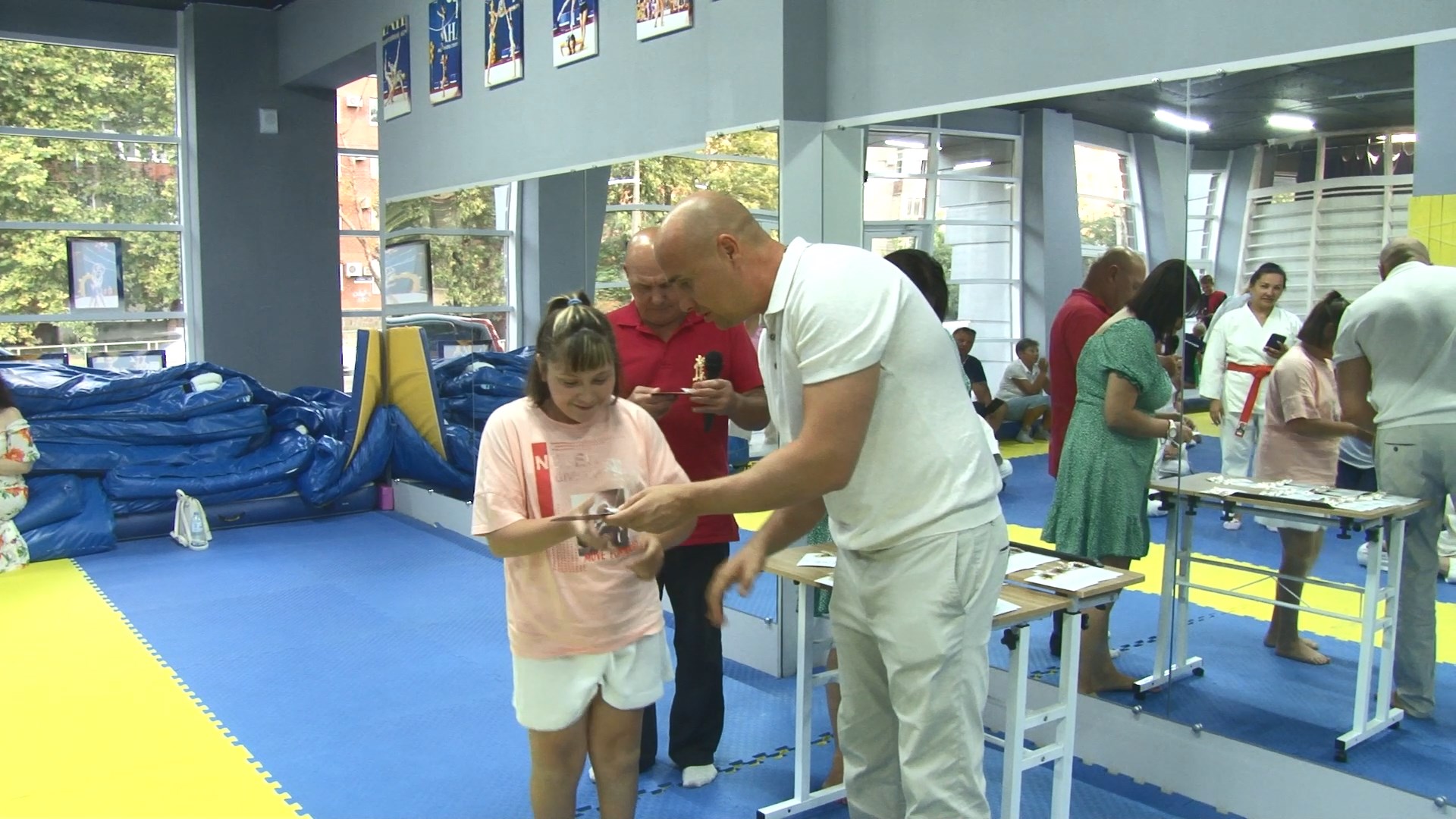 Они занимаются в секции, которую организовал Дмитрий Чайкин. Не так давно ребята сдавали нормативы, и теперь их труды были вознаграждены. Торжественная церемония прошла в зале федерации спортивной акробатики и прыжковых видов спорта курорта, где и проводят тренировки ребята.