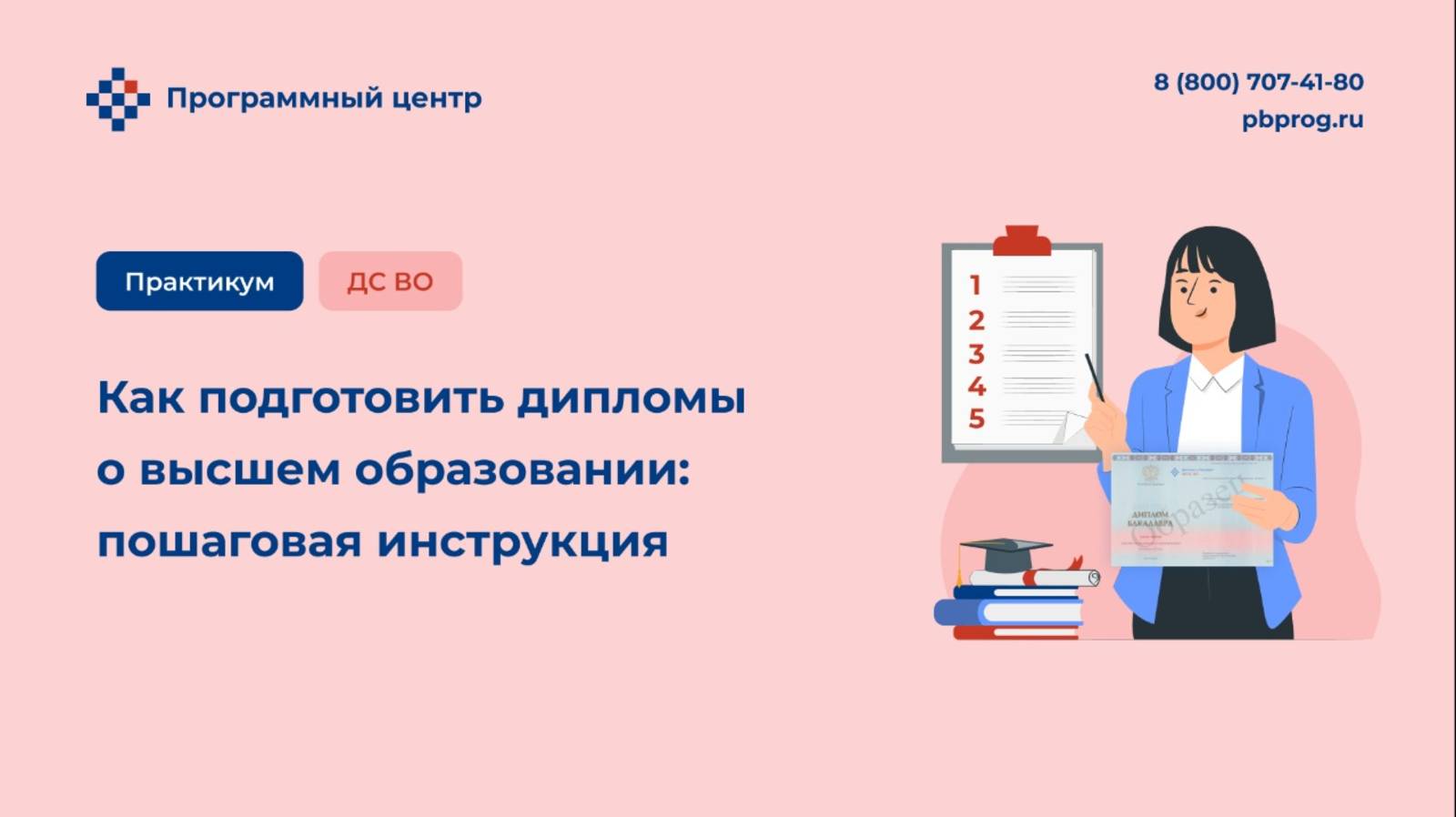 13 марта 2025 г. на практикуме рассмотрели правила оформления дипломов о высшем образовании, заполнили документы в программе «Диплом-стандарт ФГОС ВО», подготовили их для выгрузки в ФИС ФРДО, а также ответили на вопросы слушателей. _____ ПОЛЕЗНЫЕ ССЫЛКИ: Программа «Диплом-стандарт ФГОС ВО» → https://clck.ru/3HYSdJ Программа «Диплом-стандарт ФГОС ВО – Сетевая версия» → https://clck.ru/3HYSXj GPT-4o бесплатный бот Полигоша → https://t.me/PolygoshaGptBot?start=yY0uffPSyG Мы ВКонтакте → https://vk.com/pbprog_konkurs Мы в Дзен → https://clck.ru/3Fuvv5 Наш сайт: https://pbprog.ru Отдел технической поддержки help@pbprog.ru 8-800-100-58-90 Отдел продаж sales@pbprog.ru 8-800-707-41-80
