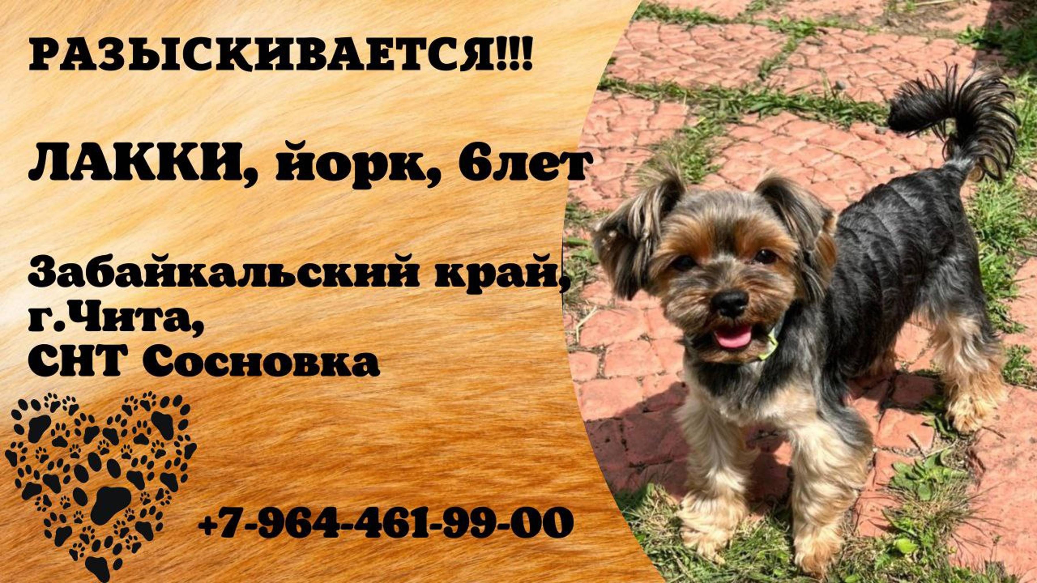 Забайкальский Чита Пропала собака 17.07 Пропала собаки по кличке лакки. Мини йоркширский терьер очень любимый член семьи. Лакки уже 6 лет. Просьба если кто то его видел вернуть за вознаграждение. СНТ Сосновка Имя хозяина: Светлана Телефон: 79644619900 Адрес: Чита, Забайкальский край Инфо https://vk.com/wall-198815410_203463 #пропала_собака#забайкальский#чита#йорк