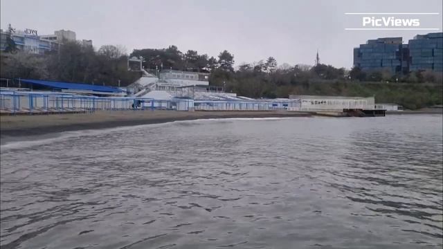 Анапа пляж Высокий Берег сегодня 13 апреля 2025. Погода и море в Анапе сейчас. Шторм на пляже Анапы