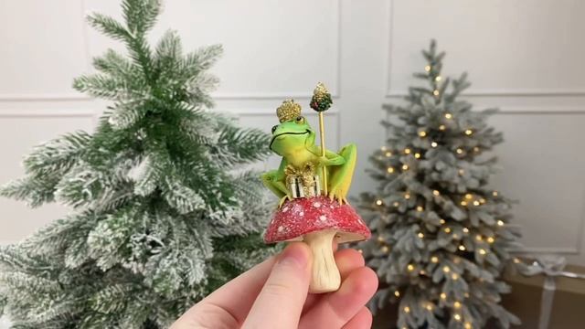 Ёлочная игрушка ЦАРЕВНА-ЛЯГУШКА С ПОДАРКОМ, полистоун, 10 см, E1047