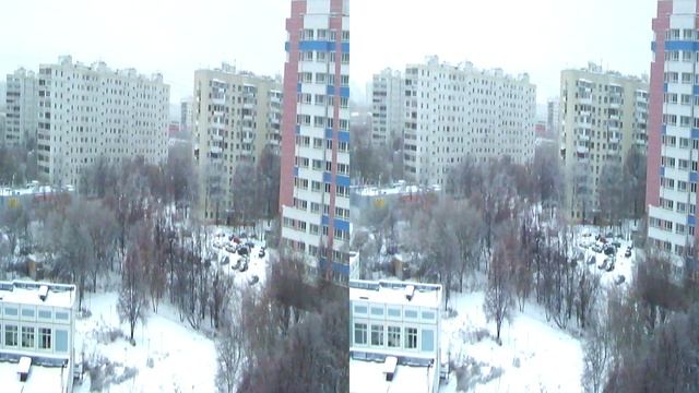 3d видео для очков. Снегопад в Москве, ул.Дегунинская в формате 3d с высоты птичьего полета.